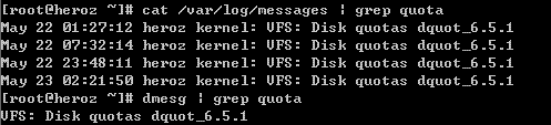 cat /var/log/messages | grep quota 명령을 실행하여 디스크 쿼터에 관련된 메시지가 뜨는지 확인한다.