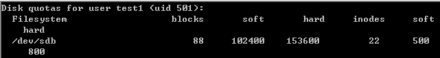 repquota -a 를 실행하여 test2, test3, test4, test5의 쿼터 설정 정보를 확인해 보면 쉽게 이해가 된다.
