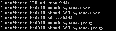 사용자의 쿼터 정보를 저장하는 데이터베이스 파일인 aquota.user 파일을 touch 명령으로 만든 후 다른 사용자들이 열어 볼 수 없도록 600의 퍼미션을 부여한다.