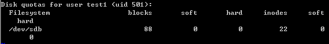 이 명령을 실행하면 /etc/passwd 파일에 존재하는 UID 500이상을 갖는 계정에 대해서 test1과 같은 동일한 쿼터 설정을 갖도록 한다. 이 명령의 쓰임에서 주의할 점은 awk앞의 ` 키는 숫자1 키 옆에 있는 키이며, 그 다음에 나오는 ' 키는 엔터키 옆에 있는 키이며, 다음 ' 키도 엔터키 옆의 키이고, 마지막 ` 키는 숫자 1키의 옆 키 다.